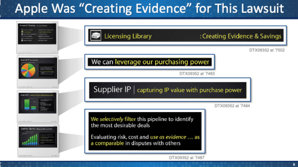 Although we really only managed to get a small glimpse of Qualcomm’s evidence demonstrating the extent of Apple’s coordinated strategy to manipulate the FRAND license rate, that glimpse was particularly enlightening. It demonstrated a decade-long coordinated effort within Apple to systematically engage in what can only fairly be described as manipulation (if not creation of evidence) and classic holdout.